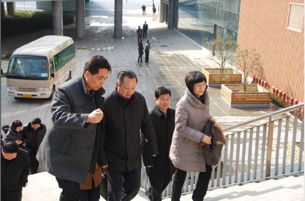 2012年2月27日上午,鹽城市委書記、市人大主任趙鵬(左一)一行來到市文化藝術(shù)中心調(diào)研考察,對文化藝術(shù)中心招商引資項(xiàng)目:江蘇幸福藍(lán)海國際影城、北京錦龍?zhí)盟囆g(shù)品展銷會(huì)所、鴻運(yùn)演藝大舞臺、月光碼頭咖啡會(huì)所、文化精品超市、KTV、美食城、東方動(dòng)漫電玩城、文化藝術(shù)中心大劇院等9個(gè)項(xiàng)目進(jìn)行現(xiàn)場考察,并聽取了市演藝集團(tuán)總經(jīng)理曹利衛(wèi)(左二)對各個(gè)經(jīng)營項(xiàng)目的運(yùn)轉(zhuǎn)情況進(jìn)行詳細(xì)的回報(bào)和介紹。陪同現(xiàn)場考察的有市委常委、市委秘書長戴元湖(右三),市委常委、市委宣傳部長陳紅紅(后排中),副市長曹友琥(右二)、朱傳耿(左三)等。