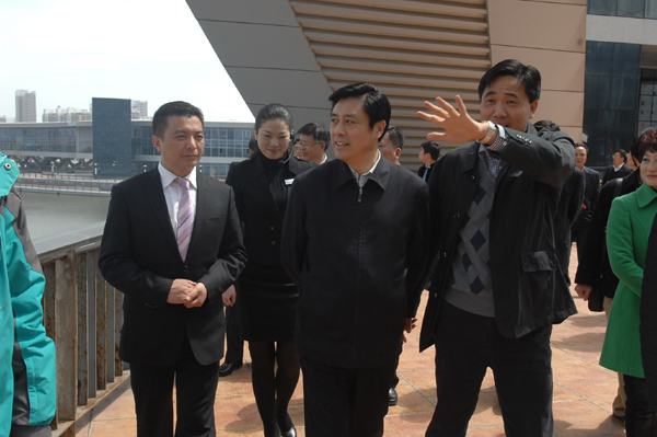 2013年4月3日,文化部副部長董偉一行來到鹽城市演藝集團參觀考察,調(diào)研藝術(shù)生產(chǎn)工作,鹽城市文化廣電新聞出版局局長許新建等一起陪同參觀考察。董部長一行對文化藝術(shù)中心幸福藍海國際影城、鴻運國際娛樂會所、錦龍?zhí)盟囆g(shù)品展銷會所、文化藝術(shù)中心大劇院、鴻運演藝大舞臺、月光碼頭咖啡會所等經(jīng)營場所進行實地參觀考察。參觀期間演藝集團總經(jīng)理曹利衛(wèi)就文化藝術(shù)中心的招商引資項目以及演藝集團經(jīng)營運轉(zhuǎn)情況進行了詳細介紹。