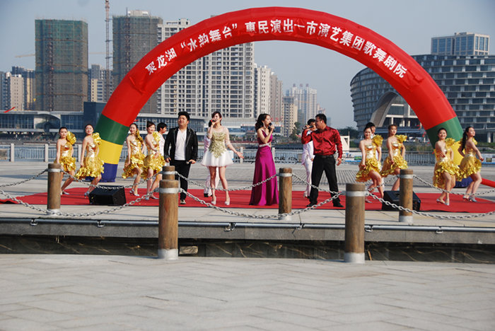 4月25日下午4點(diǎn),“水韻舞臺(tái)”惠民演出在市區(qū)聚龍湖公園開(kāi)演。鹽城市演藝集團(tuán)在聚龍湖公園設(shè)立“水韻舞臺(tái)”文化惠民點(diǎn),利用周六、周日及法定節(jié)假日時(shí)間,為市民送上文藝節(jié)目。 演出在歡快的舞蹈《開(kāi)門(mén)大吉》中拉開(kāi)帷幕,活力四射的舞蹈《小蘋(píng)果》、悠揚(yáng)的薩克斯獨(dú)奏《回家》、深情的男女聲演唱……整場(chǎng)演出好戲連臺(tái),吸引市民駐足觀賞,現(xiàn)場(chǎng)不時(shí)爆發(fā)出熱烈的掌聲。 今年以來(lái),為落實(shí)市委、市政府文化惠民的相關(guān)要求,積極策應(yīng)打造聚龍湖文化集聚區(qū)的戰(zhàn)略,啟動(dòng)聚龍湖“水韻舞臺(tái)”惠民演出活動(dòng)。每周六、日下午4:30,水韻舞臺(tái)將定期上演文藝節(jié)目。水韻舞臺(tái)將形成固定時(shí)間、固定地點(diǎn)、固定主題,最終將其打造成演藝乃至省內(nèi)外知名的文化品牌。在演出團(tuán)體和節(jié)目安排上,充分考慮到不同年齡結(jié)構(gòu)和欣賞層次觀眾的需求。歌舞類節(jié)目由市歌舞劇院精選出的弘揚(yáng)社會(huì)正能量、反映時(shí)代主旋律的現(xiàn)代歌舞;中老年觀眾則有機(jī)會(huì)聆聽(tīng)到省淮劇團(tuán)藝術(shù)家們奉獻(xiàn)的傳統(tǒng)劇目折子戲經(jīng)典唱段。
